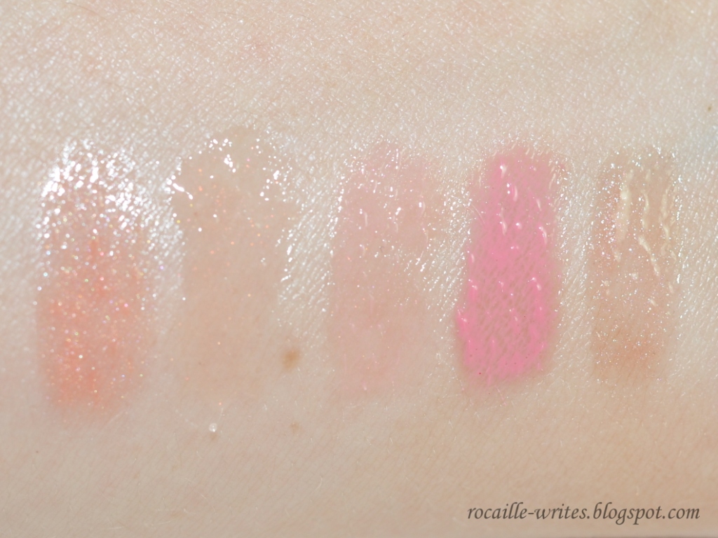 Anyhow, I thought I'd quickly share some swatches and thoughts about these in case you're looking for a nice nude lip gloss to add to your collection; and just to be completely clear, you really only need one, as they all look very similar on the lips - which is why I've also decided against including any lip swatches (that, and I was being a bit lazy).