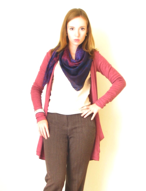 I love how comfortable and soft this cardigan is, and I love the color, kind of milky reddish purple. I got it yesterday and like it so much I could sleep in it :) It also has sort of special pockets, which unfortunately can't be seen in the photos. The scarf is another favorite and my mum got it for me on our trip to the mall last week, and I've been wearing it almost every day since. I like the square style best, and, as unbelievable as it may sound, is an only animal print garment I own (well, I never understood the whole leopard print fad, but now I kind of do ;).