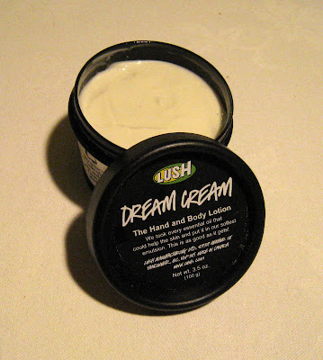 Similarly, I have very mixed feelings for Dream Cream lotion. In the tub, it smells fresh and herbal, but not 100% pleasant for me. Well, I can kind of see past that (although just 'ok' scented products from Lush defeat the purpose a bit, don't they?) since it's jam-packed with healthy essential oils and other natural ingredients, such as oat milk, rose water, olive oil, cocoa butter or chamomile oil. However, once on the skin, at first it smells a bit oatmealy, and then just like your typical body or hand lotion, a fresh, soapy scent. It's a very smooth emulsion that sinks well into the skin and it does a great job at moisturizing. I keep it at a bedside table and apply a dab whenever I feel my skin is dry and tight. I use it to moisturize my lips as well and I have to say I quite like it for that, it leaves them soft and plump and has no taste whatsoever.
