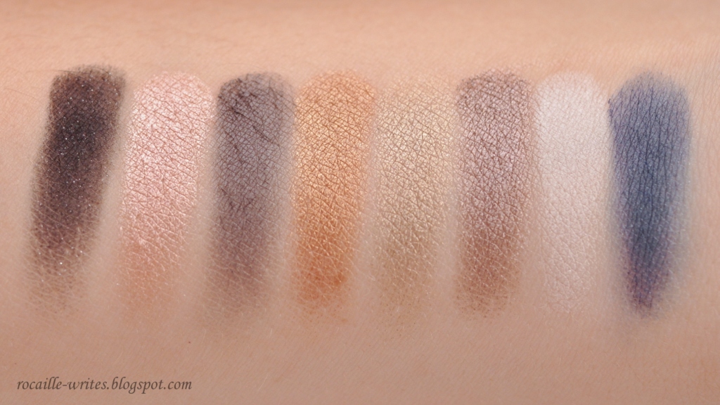 The palette features 8 mineral-based eyeshadows with a variety of finishes, housed in a very simple silver case (minimalist aesthetic aside, it's an absolute fingerprint magnet) with eyeshadow names on the back, as with other bareMinerals READY eyeshadows. I own only one more bareMinerals READY product, which is the Truth quad from the permanent line (click!) so I already knew that the formulation of these eyeshadows is an absolute dream: creamy, smooth, pigmented, long-lasting with minimal fallout. And this palette is definitely on par with the quality I came to expect.
