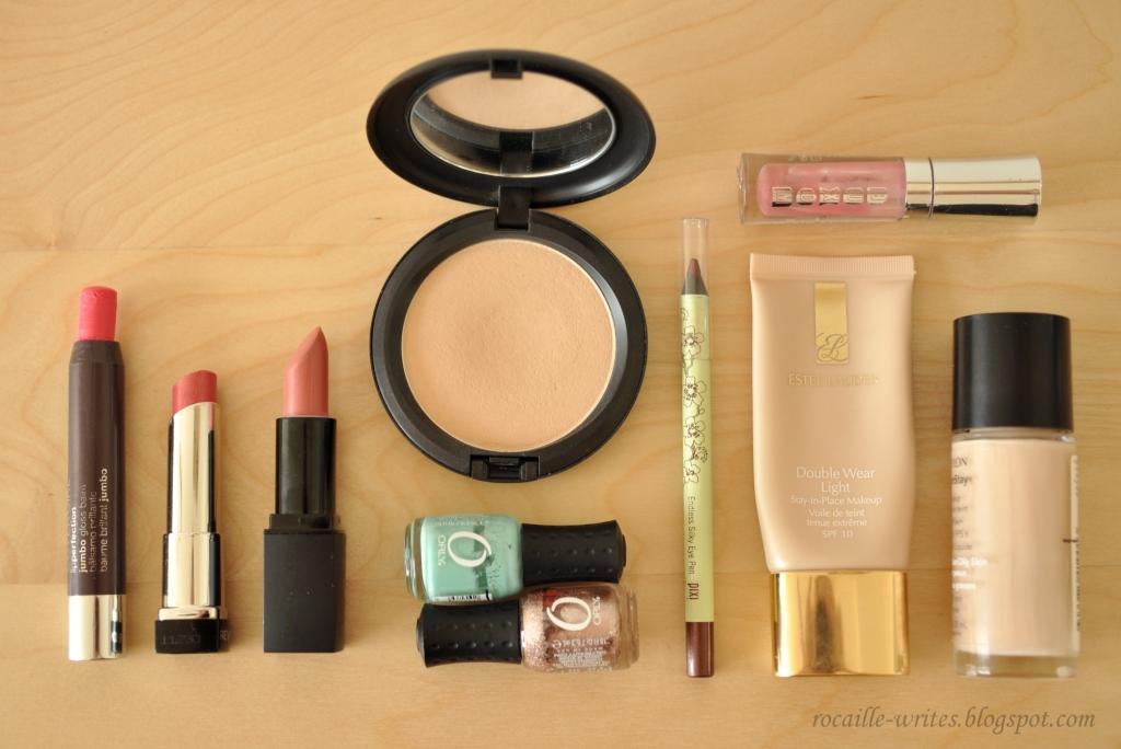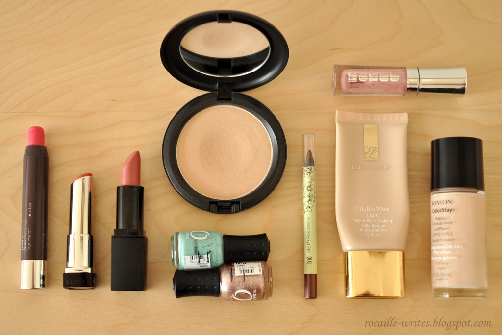 I can also see lots of progress in the Pixi Endless Silky Eye Pen in Copper Glow as well as some progress in the MAC Blot Powder; the dip in the middle seems to have gotten deeper and I'm hoping to hit pan very soon. There's a little bit of change in the other two lip products, the Covergirl Jumbo Gloss Balm in Watermelon Twist and the Elf Mineral Lipstick in Rosy Raisin, but not a whole lot - I'm hoping to get cracking on those now that the other two are out. The last item, the Revlon Colorstay Foundation for Combination/ Oily Skin, has stayed nearly the same - it's a bit too light for me at the moment (I know! That Tuscan sun, I tell you...), so I'm planning to use it more in the upcoming months.