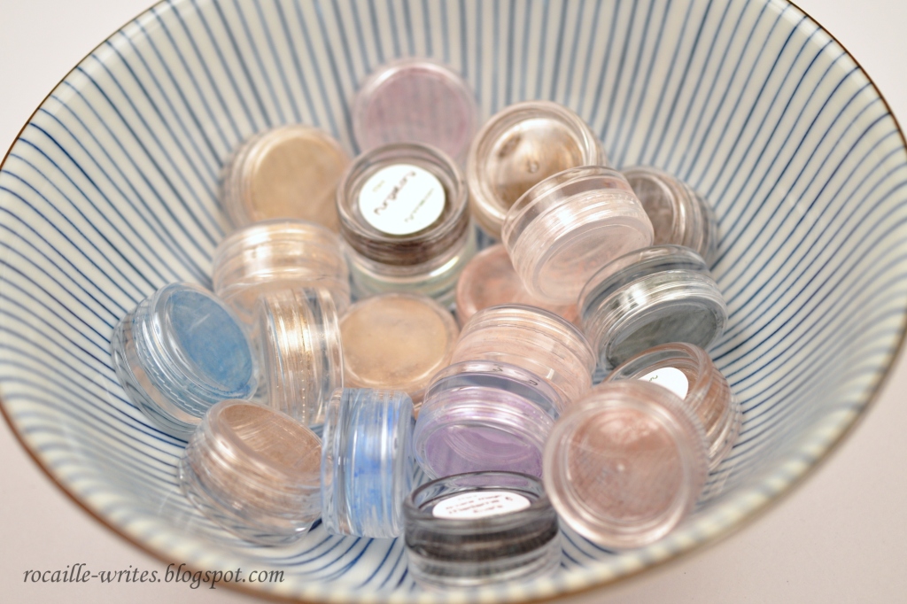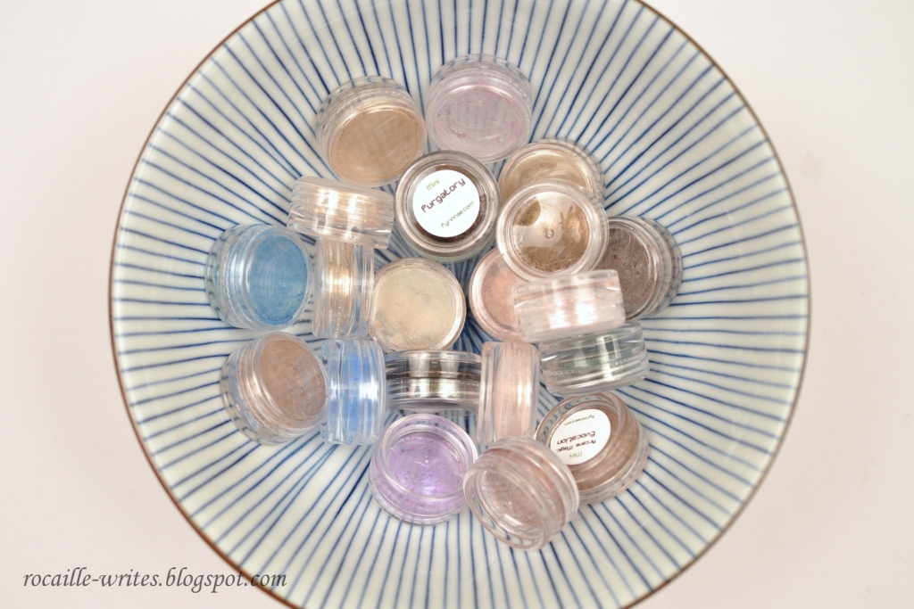 Yet again, I've succumbed to the lure of Fyrinnae loose eyeshadow minis (remember that one order I already had planned back in March?); I looove the ultimate appeal of their sparkliciousness. I hate however how inefficient these little pots can be - so while I was a rather absent blogger for the first two weeks of April, I was a very dilligent (com)presser.