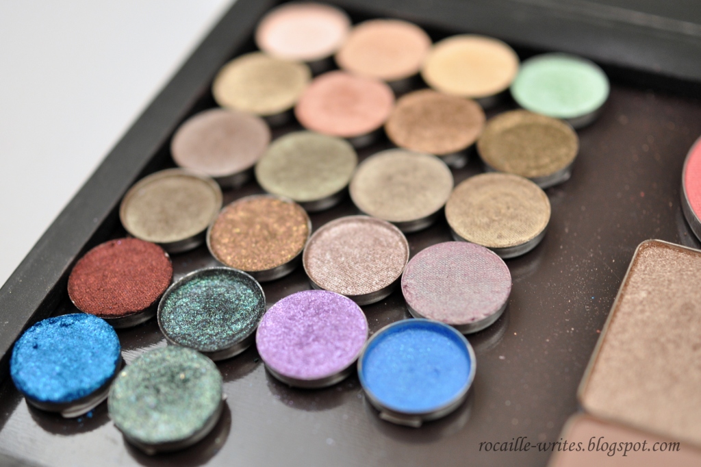 Pressing loose eyeshadows really is a rather satisfying experience. Look at all the space saved! All these empty pots consolidated into one perfectly slim palette! Oh, and the simplicity of just dipping your brush into the tiny pan, no spillage, no fall out! I will admit that I have become quite an ardent enthusiast of squeezing sparkly goo into tiny metal receptacles and I'm certainly enjoying the fruits of my (messy) labor.