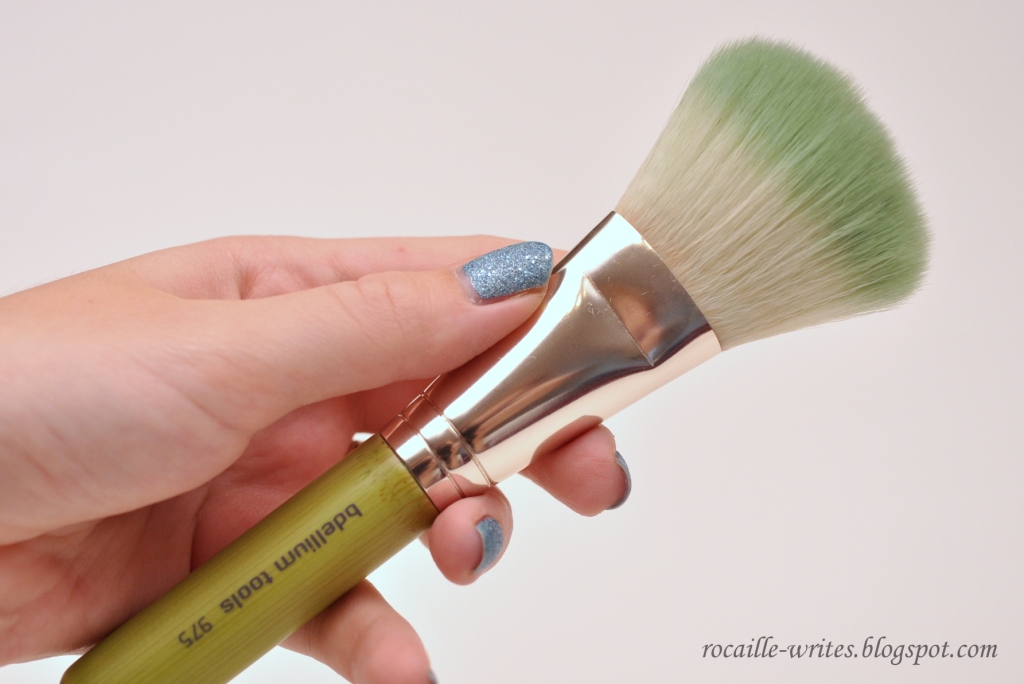 | The pom-pom shaped cheek brush in my hand for size reference; it's quite small and dense to allow for a precise blush application and blending |